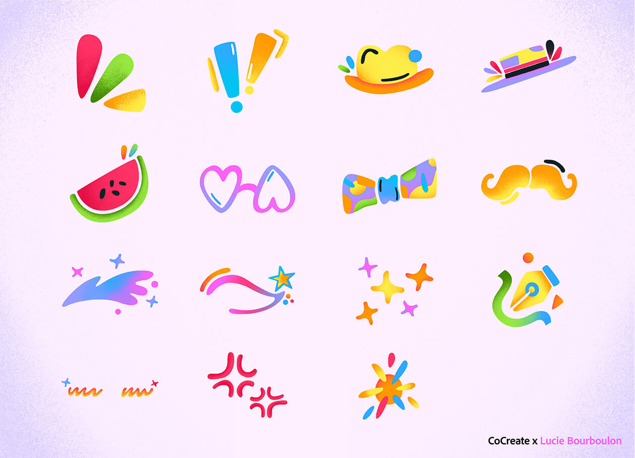 Creation of 15 stickers for the Adobe Max Photo Booth.